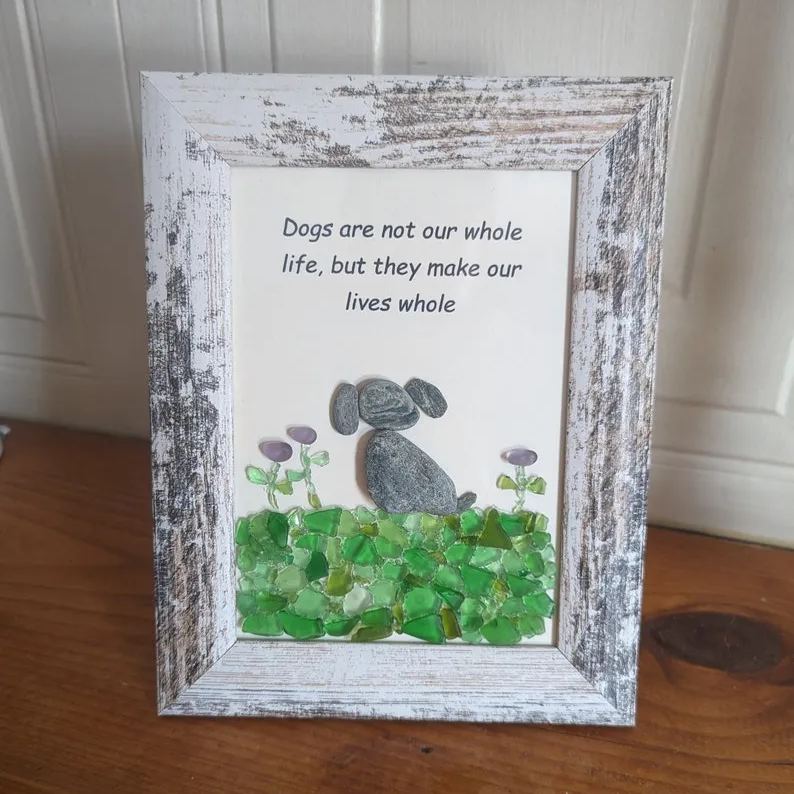 ❤️⭐Please note that the seaglass/stone is genuine and shaped by the sea. This piece is made by hand, no two pieces will be the same. Your dog may be larger or smaller depending on what pieces I have.